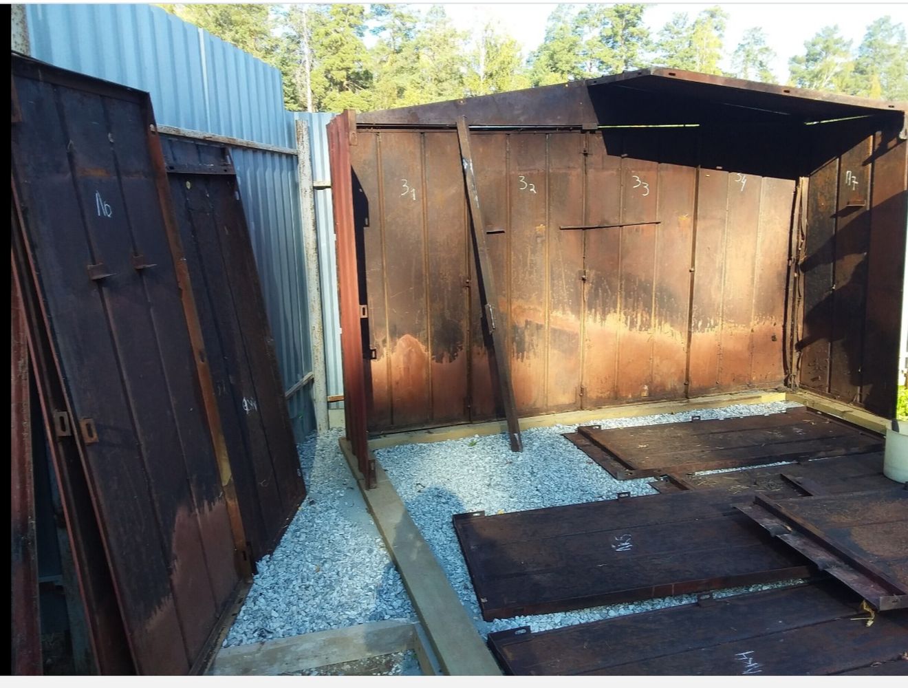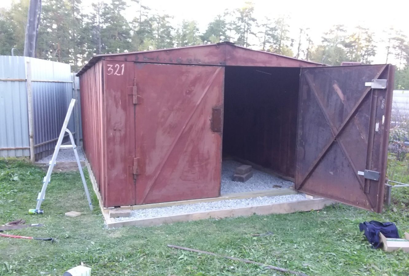 Этот металлический гараж первоначально использовался как гараж исключительно для лодок и изготавливал его Тюменский судостроительный завод.